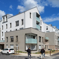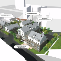Le second îlot (ilot B) comprend 49 logements locatifs sociaux intergénérationnels destinés à recevoir aussi bien des personnes âgées que des familles répartis en R+4 +combles. Les stationnements sont regroupés en majorité en sous-sol et pour une petite partie en aérien. Les cœurs d’ilots sont largement végétalisés.