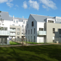 Le premier ilot (ilot A) de 31 logements destinés à l’accession à la propriété à coût maitrisé est composé de 3 bâtiments distincts en R+1 + combles sur le principe de l’îlot ouvert. Chaque bâtiment comprend une dizaine de logements, tous pourvus d’un espace extérieur (jardin, balcon, terrasse).